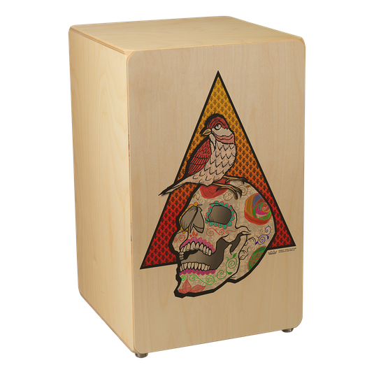 ArtBEAT™ Artist Collection Cajon - José Pasillas, features a graphic processing that infuses the artwork on the Baltic Birch wood taking on the natural wood grain textures while maintaining rich tone qualities. Presented on the cajon is original artwork by Jose Pasillas.